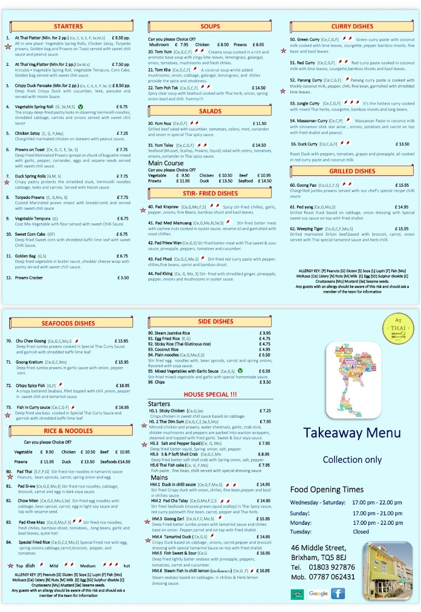 The menu at At Thai offers a thoughtfully curated selection of authentic Thai dishes, presenting a balanced mix of classic flavors and comforting preparations. It leans towards a casual dining experience with dishes designed to be shared or enjoyed individually throughout the day—from relaxed lunches to unhurried evening meals.